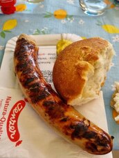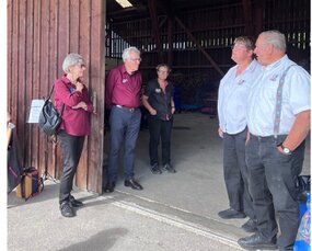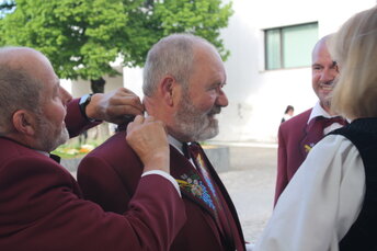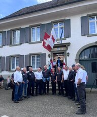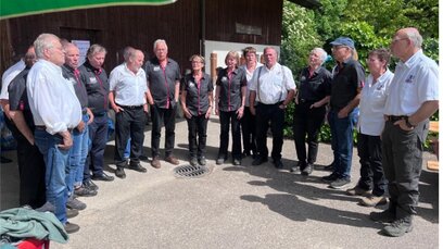 Kurzfristig wurde ich vom Bürgerratspräsident von Giebenach angefragt, ob wir am Banntag vor dem Abmarsch ein paar Lieder singen könnten, da die Schule dies nicht mehr für notwendig hält. So habe ich kurzerhand bei den Schwarzbuebe-Jodler und beim Jodlerklub Reinach nachgefragt, wer bereit wäre, mit dabei zu sein. Ich habe nicht schlecht gestaunt, dass sich so viele meldeten. Also vereinbarten wir, uns an Auffahrt um 11.30 Uhr bei uns zu treffen, um gemeinsam noch die Lieder anzuschauen. Aber wie es so ist, wollte Marcel noch Würste auf den Grill geben, damit wir vor dem Anlass noch gemeinsam etwas essen und trinken können. Das war grandios und gemütlich und hat natürlich allen sehr gefallen.